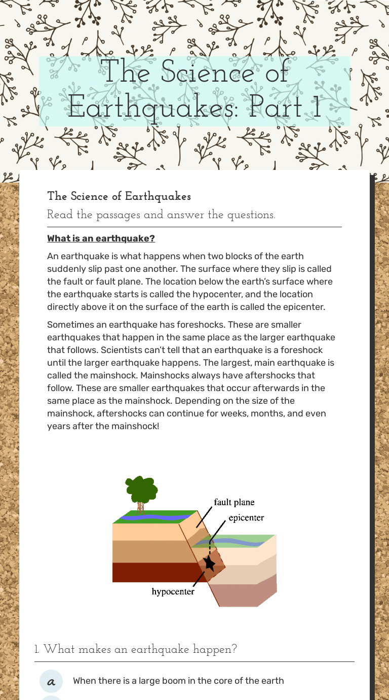 Tiffany has worked on science curriculum and lesson writing since 2015. Seismic waves are vibrations of the ground generated by the . Point a is a location on earth's surface and x is the epicenter of the earthquake. Rocks, water, air, and life. 2.7 (epicenter of an earthquake lab) •.